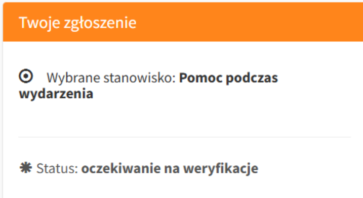Od momentu zapisania się na wolontariat zgłoszenie otrzymuje określony status widoczny w profilu wolontariusza. Status ten zmienia się na kolejnych etapach procesu, m.in. po dodaniu wymaganych dokumentów do systemu oraz po rozpatrzeniu zgłoszenia przez organizatora. Dlatego warto regularnie sprawdzać status zgłoszenia, aby na bieżąco wiedzieć, na jakim etapie znajduje się proces rekrutacji.