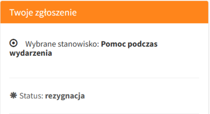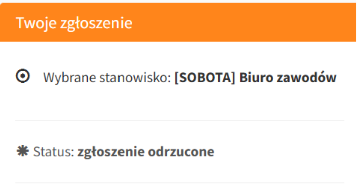 Zgłoszenie odrzucone pojawia się w momencie, gdy Twoje zgloszenie zostanie odrzucone. Oznacza to, że nie zostales przyjęty na dany wolontariat, dzień lub stanowisko.